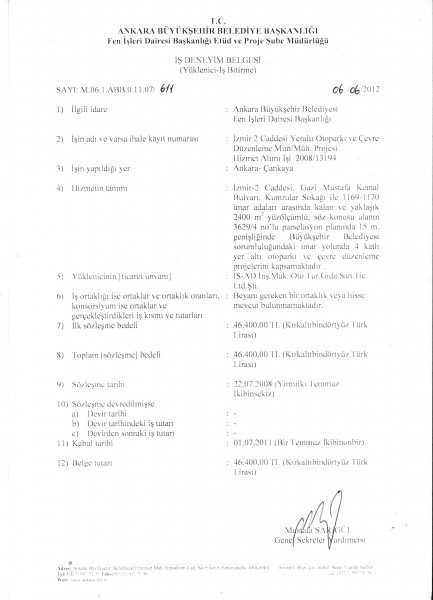 Dumlupınar Üniversitesi Kültür ve Kongre Merkezi İş Bitirme Belgesi